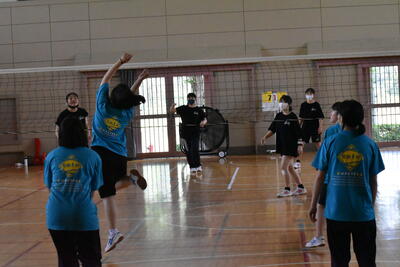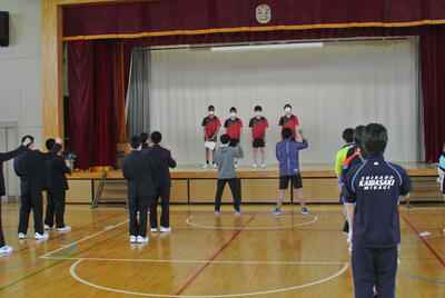 ⑤「バレーボール」・・・6人制で行いました。最後に、優勝学年(3年生)と教員チームとのエキシビションマッチが行われ、普段はなかなか見ることのできない先生方のプレー(珍プレー含む)に会場は盛り上がりました。
