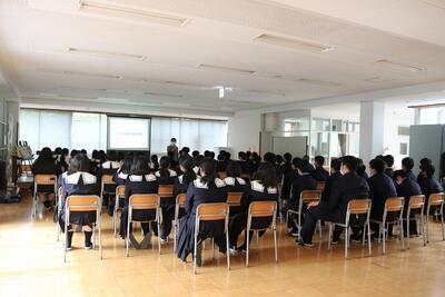 1,2年生は3本立てであった。「進路講演会」では働くことの意義や進路について考えるとともに、これからの高校生活で準備すべきことについて、続く「職業観育成講座」では将来の職業への理解・探究、資格取得と職域、進学・就職について、最後の「企業講話」では企業が求める人材、仕事をする上で大切なことなどについて各講師の先生方から講義を受け近い将来への準備への心構えについて認識を深めることができた。