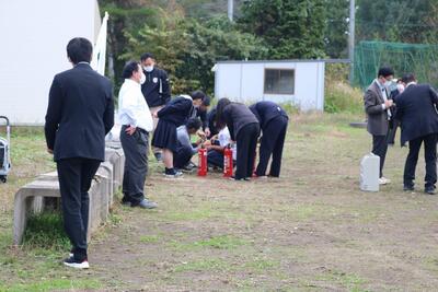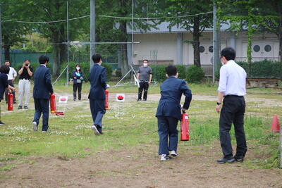5月20日(木)7校時、〔川崎校&川崎キャンパス〕合同での防災訓練が行われました。始めに2階コモンホールに全員が集まり、中央スクリーンにて東日本大震災時の校舎の様子をスライド写真で見ました。皆、当時の写真を真剣に見ていました。続いて本日の「地震→火災」訓練の流れや行動のポイントを確認して教室に戻り、緊急地震速報音(ゆれくるコール)の後、「訓練!訓練!緊急地震速報です。慌てず身を守りなさい」の緊急放送で訓練開始。揺れが収まってから校庭に避難、水消化器による消火訓練、講評(副校長)がありました。講評の中で「避難時間は2分9秒、無言で速やかに避難できたこと、地震発生時の行動ポイントの確認、〔地震→火災/大雨→洪水・土砂崩等〕等の二次災害への注意、本日より大雨警戒レベルが新しくなったこと、自治体HP等で指定避難場所(収容地区・収容可能人数)の確認、自助・共助・公助」等について話がありました。防災主任・山口先生が共助の話に触れ生徒の皆さんに対して「東日本大震災時は何歳でしたか?」の問いかけにある生徒から「8歳!」の返答があり、「そして今の年齢は?守られる側から守る側に」との助言に生徒の皆さんは心で受け止めている様子でした。【文責:副校長 下田 仁】