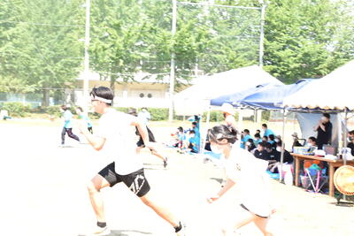 (昼食を挟んで)⑤「校庭スプラトウ-ン」(校庭に敷かれている複数の裏表の色が異なるプレートを対戦チームがそれぞれ自陣の色に変えて回り枚数を競うもの)では、鉢合わせになった2人がプレートを表に裏に交互に競い合うシーンが続く場面もありました。