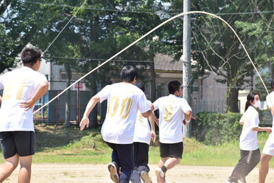 ②8の字長縄「瞬間、心重ねて」では、縄の回し方が速い学年チームでは次々と忙しく飛んでいました。