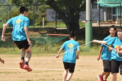 ④クイズ綱引き「流良空式綱引」(長縄出場メンバーにクイズが出され、正解した人だけにより綱引きを行うもの)ではクイズ正解者が1人だけになり、複数人の相手チームに独りで挑んでいる学年チームもありました。