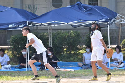 ⑧交流ソフトボール大会「川高ソフトボール総選挙」では、中学校時代に吹奏楽部だった生徒が中心になり、楽器による5人組応援がもり立てましたし、各回ごとに対戦チームが先生の氏名が記載されたカードを引き、誰も予期しないな先生が打席に立つ意外性も楽しいものでした。 【文責:副校長 下田 仁】