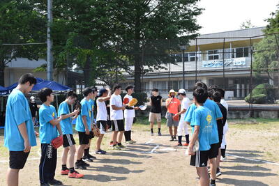 第1日目は、強い日差しの中、校庭で楽しく実施できました。熱中症の注意の呼びかけを前日に一斉メール送信(→生徒・保護者)して、当日はテントを用意し大きな怪我等もなく無事故で実施することができました。 第2日目開会式終了後、