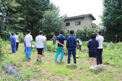 引き続き、校舎見学(部活動見学を含む)の後、体験学習(農業)が行われました。体験学習については、参加した中学生はジャージに着替えて外靴に履き替えて校舎外のピロティー前に集合し、農業担当の先生から「そもそも農業とは?」について、参加生徒に問いかけながら理解を深めました。そして、敷地内にある農場(川崎校は普通科で農場があるのです!農業関係の授業もある)に移動し、芋掘り(を体験する予定でしたが、実際には時間の関係で在校生が掘りました)の後、ピロティーにて、参加していただいた生徒・保護者の皆様に蒸かしたジャガイモの試食をしていただき、和やかな雰囲気でした。