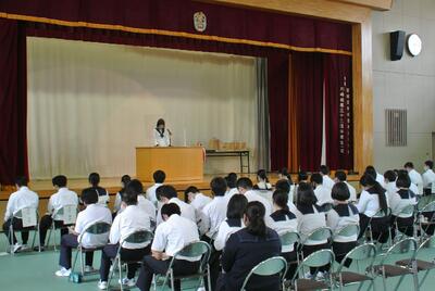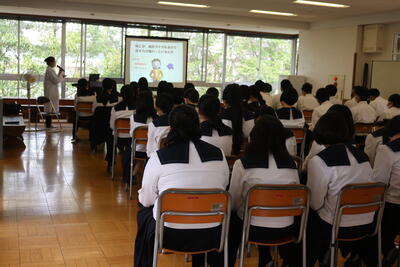 9月29日(水)、薬物について正しい知識を習得し薬物乱用の防止を図る目的で、仙南保健所の森京子先生を講師にお招きして、薬物乱用防止教室が定期考査終了後に、2階コモンホールで実施されました。【文責:副校長 下田 仁】】
