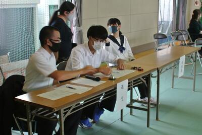 11月11日(木)6・7校時、体育館で生徒会立会演説会が行われ、その後、校舎2階の多目的室で投票が行われました。投票にあたっては、川崎町総務課・選挙管理委員会事務局様のご協力をいただき、本物の投票箱と投票記載台をお借りして行われました。18歳以上の生徒が投票権を有する時代に、その意識を高めるためにも実物を使用させていただくことができて有意義でした。ありがとうございました。【文責:副校長 下田 仁】