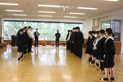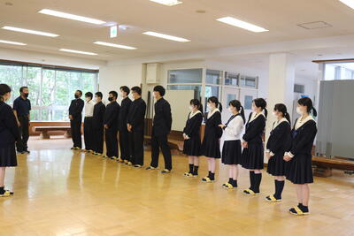 休憩の後、川崎校の生徒を対象に、部活動紹介、校歌紹介(CD)、そして、新入生ひとり一人の自己紹介がありました。新入生はそれぞれ、趣味や高校生活への抱負等について思い思いに立派に自己紹介していました。