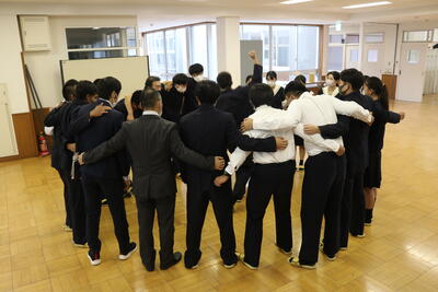 9月15日(水)の放課後、これから就職試験を受ける3年生を激励する就職活動出陣式が2階コモンホールで行われました。始めに、荒井進路部長から「何としても合格するのだ。」との気合いの入った熱い「檄」が飛ばされました。続いて、副校長からは「就職希望者はもちろんのこと、いずれ就職試験を受けることになる進学希望者も含めて、これまで積み重ねてきた準備を思い返し自信を持って就職試験に臨むように。」との激励がありました。そして、就職希望者13人ひとり一人から順番に抱負(決意表明)が発表されました。そして、級友である進学希望者代表の鎌田君から就職を希望する級友に対する激励のことばが贈られ、最後に全員が円陣を組んで就職生徒代表の菅原君が号令をかけました。9月16日(木)から開始される就職試験、就職希望者全員が悔いのないように実力を十分に発揮して、見事合格を勝ち取ることを祈っています。【文責:副校長 下田 仁】