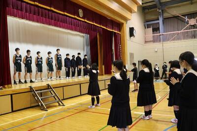 令和4年4月28日(木)に高校総体仙南地区大会に向けて壮行式がありました。壮行式前には,応援団の代表がエールの送り方を全校生徒に指導しました。とても頼もしかったです。また,事前の準備や司会進行をする生徒会のみなさんも立派でした。