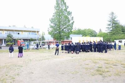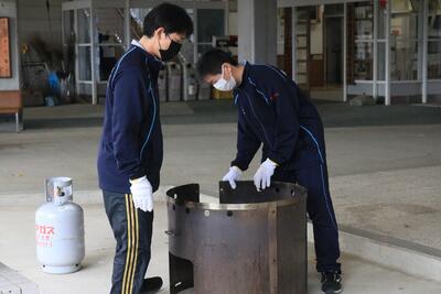 令和4年11月15日(火)に防災訓練が岩沼高等学園川崎キャンパスさんと合同で行われました。今回は避難後の訓練として,川崎校は,コロナウイルス対策を施した炊き出し訓練を行いました。川崎町福祉課と社会福祉協議会からご飯を炊く防災釜と豚汁を作るための防災鍋を借用しました。炊き出し訓練では,ご飯と豚汁を全校生徒60人分と教員分用意するという課題のもと,町職員の指導を受けつつも,教員の力は借りずに,生徒たちだけで挑戦しました。お米33.3合(5キログラム)を炊くための水加減や火起こし,鍋の具材となる野菜を学校の畑から必要分だけ調達することなどを自分たちで考えて行動しました。そして出来上がり後には,配膳という運営までを行いました。