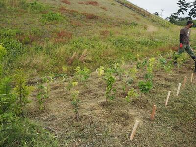令和4年6月10日(金)に川崎校の1年生と川崎第二小学校の3年生との交流事業として,岩沼にある千年希望の丘で植樹活動を行ってきました。講師には,公益財団法人鎮守の森のプロジェクトから水田さんと箱崎さんが協力してくれました。この植樹活動は東日本大震災での津波被害を教訓として,木を植えて森を作り,防潮堤とするための取組です。高校生と小学生とで100本の木を植えました。山桜など様々な木の種類を植えましたが,中心となる木は潮風に強いタブノキとなるそうです。木の苗を植えた児童・生徒が数年後,数十年後に森となった姿を見て欲しいものです。 【文責:副校長 小野寺基好】