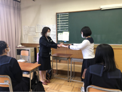 令和4年6月23日(木)にみやぎ生協様より,本校の教育活動である総合的な探究の時間「カワサキクエスト」の取組にご理解をいただき「みやぎスマイル基金」の助成を受けることになりました。当日は,みやぎ生協の代表の方から,1年生の生徒代表の佐藤心美さんへ目録の授与式がありました。その後の活動として,1年生が町の方へインタビューを開始する前の練習として,校内の先生方へのインタビューを行いました。副校長も練習インタビューを受けました。休日にはどんなプラモデルを作りますか?どんな中学・高校生でしたか?など,ちょっと回答に困りました。しかし,何度か練習して,回答から他の人に紹介できる人物像を作り上げられるようになってください。