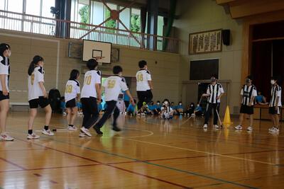 令和4年7月20日(水)・21日(木)の2日間に渡って,全学年が参加してのレクレーション大会(通称:レク大)が開催されました。両日とも欠席者が「0」でした。コロナウイルス対策も徹底して,競技前には必ずアルコール除菌チームが選手の手を消毒してくれました。熱中症対策もバッチリで大型扇風機や冷風機が準備されました。長雨の影響でグラウンドが使用できず,体育館での大会となりました。競技もユニークで長縄「君の縄」や卓上野球盤を模した「川崎・リアルソフトボールBAN」,e-sports「川崎タイピング早打ち選手権」など,大盛り上がりでした。最後は,先生方と優勝チームとのエキシビジョンバレーが行われました。