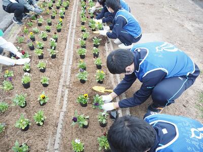 令和4年10月27日(木)の放課後に,生徒会の皆さんと学校近くの山形道宮城川崎インターの料金所脇の花壇の植栽に行ってきました。この植栽はNEXCOの職員の皆さんと共同で毎年行っています。苗は柴田農林高校の本校から仕入れています。