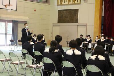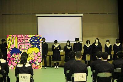 令和4年4月28日(木)に高校総体仙南地区大会に向けて壮行式がありました。壮行式前には,応援団の代表がエールの送り方を全校生徒に指導しました。とても頼もしかったです。また,事前の準備や司会進行をする生徒会のみなさんも立派でした。