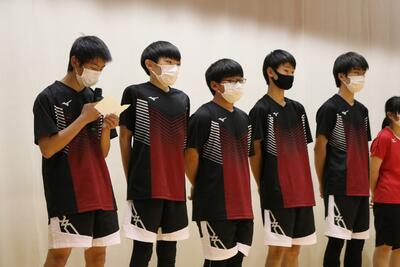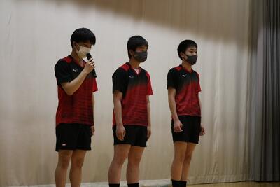 壮行式では,陸上競技部,ソフトテニス部,卓球部,男子バスケットボール部がそれぞれの意気込みを表明し,その都度応援団がエールをきり,全校生徒で盛り上げました。最後に,運動部を代表して,陸上競技部で3年生の佐藤友麻くんが力強い宣誓をして締めくくられました。練習の成果が出ることを祈ります。【文責:副校長 小野寺基好】