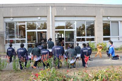 令和4年10月27日(木)に川高祭(文化祭)で披露した和太鼓演奏とよさこい演舞を,学校裏のディサービスに訪問し,おじいちゃん,おばあちゃんに向けて再演しました。披露のたびにディサービスのみなさんから暖かい拍手をいただきました。とても喜んでいただけたと思います。 【文責:副校長 小野寺基好】
