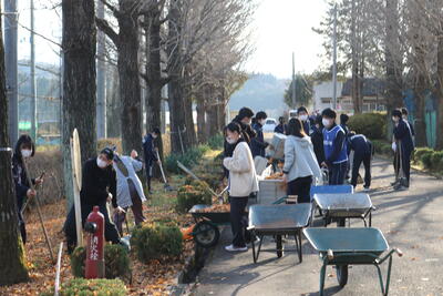 令和4年11月28日(月)の定期考査最終日に全校町内清掃が行われました。清掃は町内の歩道を中心に行うグループと校内の銀杏並木の大量の銀杏の葉を集めるグループとに分かれて行いました。普段自分たちがお世話になっている施設や人々に感謝を表現する行動はとても大切な事だと思います。