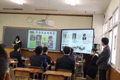 令和5年2月2日(木)に,川崎町町長を始めとし,お世話になった方々をお招きして,1年生の総合的な探究の時間で取り組んでいる,カワサキクエストseason2「高校生がYouTubeで川崎町の町おこし」の成果発表会が行われました。この発表会に至るまでの道のりは大変で,放課後も各グループが編集会議や作業を行いました。その成果は素晴らしく,来校いただいたお客様に感動を与えるものでした。