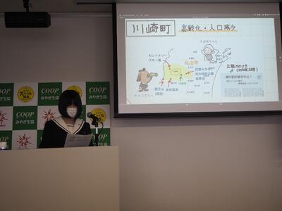 令和4年6月23日(木)にみやぎ生協様より,本校の教育活動である総合的な探究の時間「カワサキクエスト」の取組にご理解をいただき「みやぎスマイル基金」の助成を受けることになりました。当日は,みやぎ生協の代表の方から,1年生の生徒代表の佐藤心美さんへ目録の授与式がありました。その後の活動として,1年生が町の方へインタビューを開始する前の練習として,校内の先生方へのインタビューを行いました。副校長も練習インタビューを受けました。休日にはどんなプラモデルを作りますか?どんな中学・高校生でしたか?など,ちょっと回答に困りました。しかし,何度か練習して,回答から他の人に紹介できる人物像を作り上げられるようになってください。