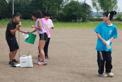 令和6年7月17日(水)・18日(木)の2日間に渡って、全学年が参加してのレクリエーション大会(通称:レク大)が開催されました。今年度は初めて縦割りでチームを組みました。初日は競技開始前に雨が降っていたのでグラウンド競技開催が心配されましたが、数年ぶりに完全実施できました。2日目は体育館で開催し、熱中症対策として大型扇風機や冷風機を準備して行いました。競技はユニークで借り物競走「はじめてのおつかい」、二人三脚リレー「走る走る俺たち」、大声選手権「君が好きだと叫びたい」、e-sports「マリオカート」、「キンボール」など全20種目、大盛り上がりでした。最後は、先生方と優勝チームとのエキシビジョンバレーが行われました。