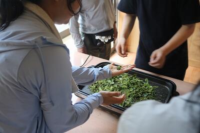 令和6年8月4日(日)に、地域指定福祉教育推進事業実行委員会主催の世代間交流事業がドリームの郷を会場に開催されました。この活動にはボランティア部が参加して、NPO法人 川崎町・学校サポートネットワークさんの協力を得て、川崎町の茶畑復活プロジェクト・茶摘み体験に参加しました。茶畑で茶摘みを行い、その後に摘んだ茶葉を事業参加者全員で試飲するまでを経験することができました。工程は、茶摘み・茶葉選別・1分蒸し・手もみ焙煎・試飲という感じです。この活動では、お茶摘みだけではなく施設利用者の方々とのレクリエーション交流もありました。ここでもボランティア部が大活躍でした。