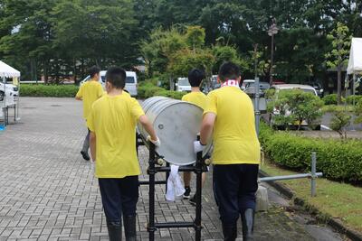 令和6年8月31日(土)に、学校裏の川崎町健康福祉センター敷地内を会場として、ボランティアサマーフェスタ24がありました。生徒は1年生から3年生までの19名がボランティアスタッフとして参加しました。当初は小雨交じりの天候でしたが、徐々に回復し、多くの家族連れで賑わいました。遊び場コーナーでは輪投げやニュースポーツ、ゲームコーナーでは射的、ふれあいコンサートでは会場を盛り上げ、ニジマス(イワナ)焼きコーナーでは、魚を管理し、炭焼きし、募金の呼びかけも行いました。会場準備から撤収作業まで暑い中がんばる生徒たちの姿は誇らしかったです。