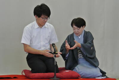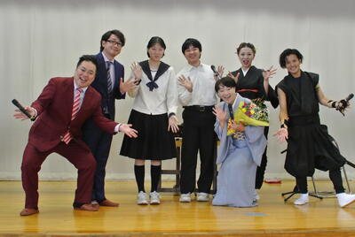 令和6年9月30日(月)に芸術鑑賞会がありました。今年度は3年に一度の大芸術鑑賞会でした。ジャンルは主として古典芸能で、チャッパと舞踊・和太鼓と三味線の鼓風☆響さん、漫才のニードルさん、そして東北弁落語の六華亭遊花師匠の芸を鑑賞しました。体験コーナーでは、師匠に落語におけるそばのすすり方を教わり、鼓風☆響さんには太鼓のバチさばきと心得を習いました。笑いの絶えない大盛り上がりの芸術鑑賞会でした。