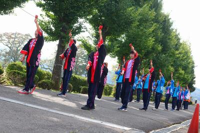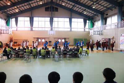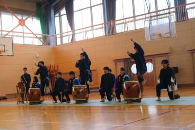 令和6年11月7日(木)に川高祭(文化祭)で披露した和太鼓演奏とよさこい演舞を、学校裏のディサービスから、おじいちゃん、おばあちゃん達を招待し、学校の体育館で再演しました。披露にあたりディサービスのみなさんから暖かい拍手をいただきました。とても喜んでいただけたと思います。