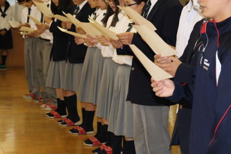3年生を送る予餞会が行われました。チームにわかれての川高クイズ大会や、思い出のムービー鑑賞などをし、最後には3年生より、3学年担当の先生方へ手紙が渡されました。