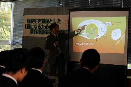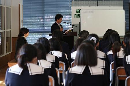 青葉法律事務所の弁護士の花島伸行さん、ぷらむ保育園理事長の梅津哲也さんに来校頂き、親になる前の世代の高校生を対象に、親育ち・子育て等に関する講演会を行いました。