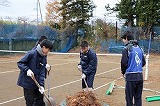 【写真: 〇ボラ部による落ち葉拾い。〇全校清掃活動、