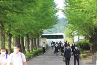 校門から校舎までつづく「イチョウ並木」の落葉が始まりました。朝練の生徒に掃除を手伝ってもらいながら、いつの間にか訪れた「秋」を感じました。