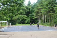 昨日からの雨でグランドコンディションが悪いため,新しい練習場所として陸上部が早速使用しました。
