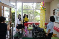 学校と隣接するデイサービスセンターより依頼された「七夕飾り」を,ボランティア部の代表が届けました。