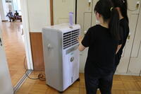 暑さに備えて各教室に冷風機を設置しました。気化熱を利用した「優しい涼しさ」です!!