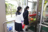 学校と隣接するデイサービスセンターより依頼された「七夕飾り」を,ボランティア部の代表が届けました。