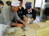地元の「みやぎかわさき蕎巧会(きょうこういかい)」の皆様のご協力のもと、3学年による「蕎麦打ち体験教室」が行われました。