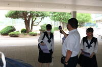 学校と隣接するデイサービスセンターより依頼された「七夕飾り」を,ボランティア部の代表が届けました。