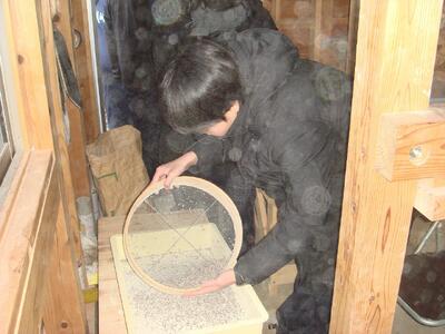 学校で栽培した「そば」を挽いて打って食する