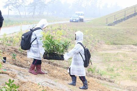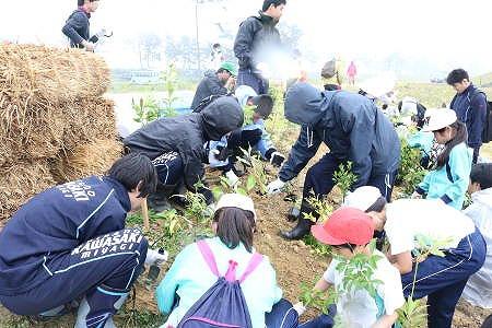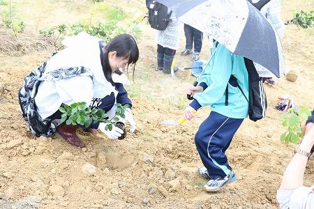 川崎校1年生と川崎第二小学校の3・4年生とで、東日本大震災メモリアルパーク千年希望の丘 新浜公園で植樹ボランティアが行われました。