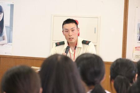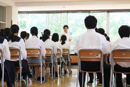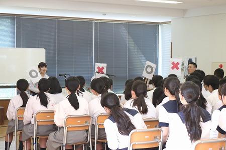 今年度はフリップを使い質問に○×で答えてもらう形式を採用しました。進学先で現在どのような勉強をしているかの実演などもあり、生徒達は社会人の先輩の話を真剣に聞いていました。