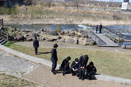3年生と2年生で学校近くの公園へお花見をしに行きました。
