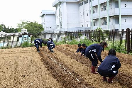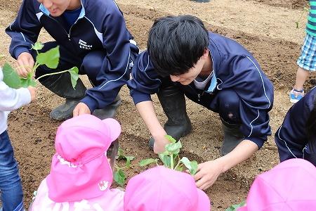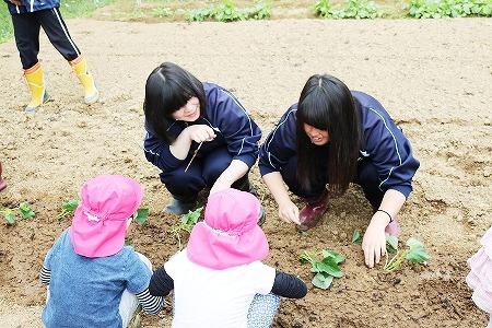 かわさきこども園さんで、選択科目『生物活用』の生徒たちが毎年恒例のさつまいもの苗植えを行いました! また、11月頃に収穫を一緒にする予定です。