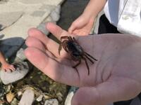 例年ですと桜の下での撮影でしたが,今年は「サワガニ」が生徒達を迎えてくれました。