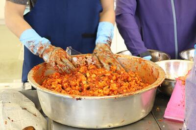 講師を紹介させていただいた後、自校(川崎キャンパス、川崎校)で育てた野菜を利用してキムチづくりの紹介、キムチづくり体験、チヂミづくり体験、試食の順で進んでいった。隠し味として、熟した柿、干し柿、リンゴ、梨、バナナなどが使われていたのが驚きだった。最初はキムチ作りに疑心暗鬼だった生徒も、最後には、キムチの美味しさに、皆こころが一つに溶け合った。【文責:副校長 下田 仁】