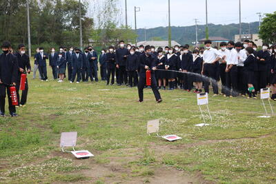 5月20日(木)7校時、〔川崎校&川崎キャンパス〕合同での防災訓練が行われました。始めに2階コモンホールに全員が集まり、中央スクリーンにて東日本大震災時の校舎の様子をスライド写真で見ました。皆、当時の写真を真剣に見ていました。続いて本日の「地震→火災」訓練の流れや行動のポイントを確認して教室に戻り、緊急地震速報音(ゆれくるコール)の後、「訓練!訓練!緊急地震速報です。慌てず身を守りなさい」の緊急放送で訓練開始。揺れが収まってから校庭に避難、水消化器による消火訓練、講評(副校長)がありました。講評の中で「避難時間は2分9秒、無言で速やかに避難できたこと、地震発生時の行動ポイントの確認、〔地震→火災/大雨→洪水・土砂崩等〕等の二次災害への注意、本日より大雨警戒レベルが新しくなったこと、自治体HP等で指定避難場所(収容地区・収容可能人数)の確認、自助・共助・公助」等について話がありました。防災主任・山口先生が共助の話に触れ生徒の皆さんに対して「東日本大震災時は何歳でしたか?」の問いかけにある生徒から「8歳!」の返答があり、「そして今の年齢は?守られる側から守る側に」との助言に生徒の皆さんは心で受け止めている様子でした。【文責:副校長 下田 仁】