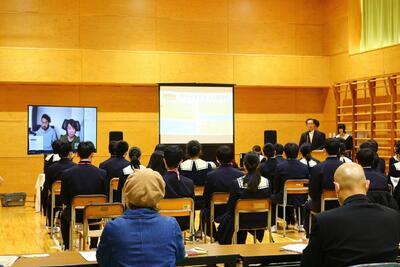令和6年2月1日(木)に、川崎町町長を始めとし、お世話になった方々をお招きして、2・1年生の総合的な探究の時間で取り組んでいる、カワサキクエストseason3「町内で魅力的な取組をしている方々のインタビュー動画」(2年生)、「特産のそば粉を使った新しいメニュー開発【ガレット】」(1年生)の成果発表会が行われました。この発表会に至るまでの道のりは大変で、放課後も各グループが編集会議や作業を行いました。その成果は素晴らしく、来校いただいたお客様に感動を与えるものでした。 【文責:副校長 小野寺基好】