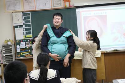令和6年2月5日(月)に、宮城県助産師会 東北文化学園大学 医療福祉学部看護学科より講師をお招きして、3年生対象の「高校生向けライフプランセミナー」を開催しました。参加した生徒の感想には、「近い未来、あるいは遠い未来のことを改めて考えることができた」「赤ちゃんを抱っこしてみて思ったよりも重くてびっくりしました」「結婚や子どもをもつこと、出産、子育ての大切なことを知ることができました」などがあり、将来に向けてたくさん学んだようです。